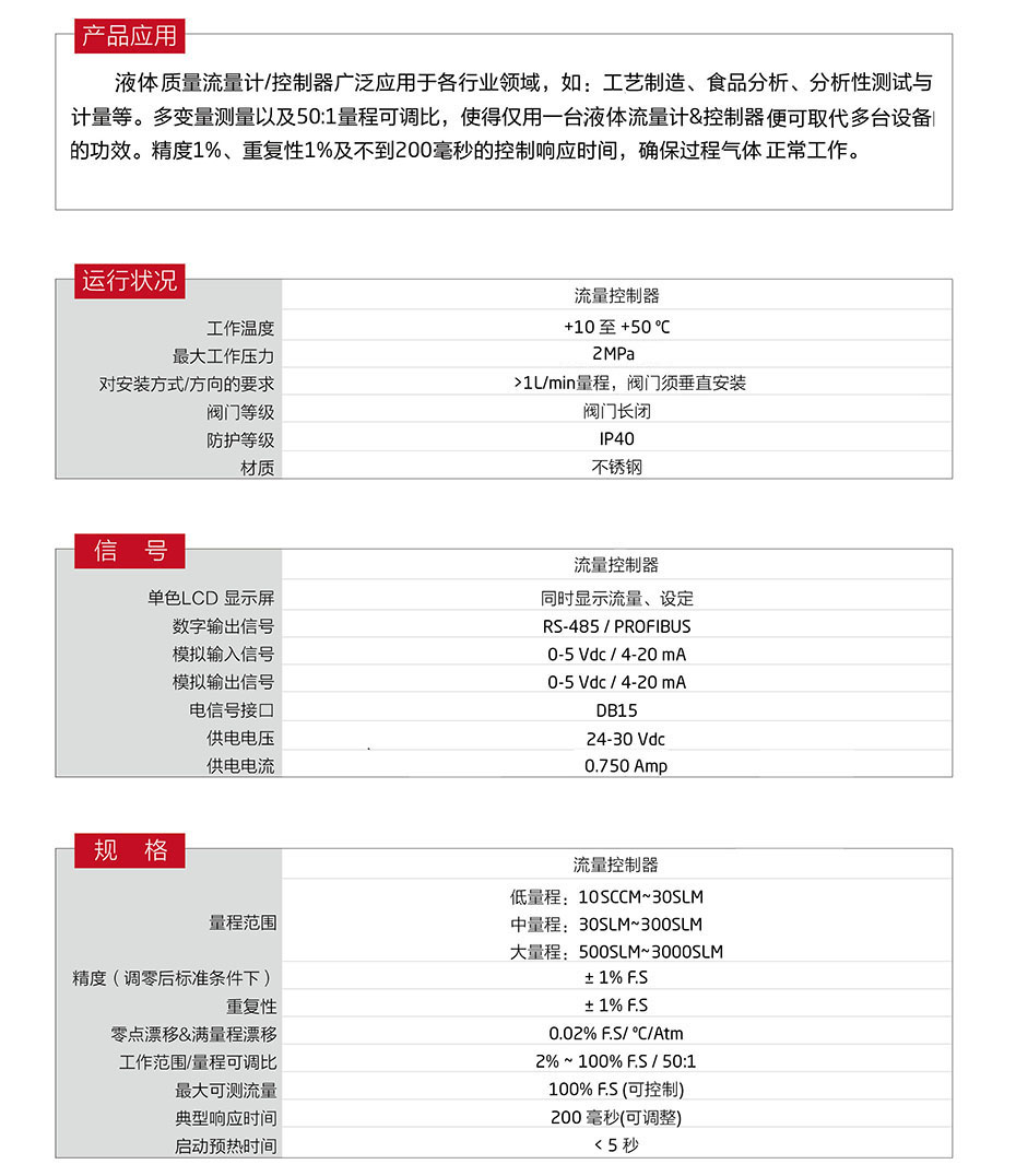 流量范圍:10SCCM≤3000SLM 顯示:LCD(數顯)供電:+/-15V或者24V功能:氣體質量流量控制器